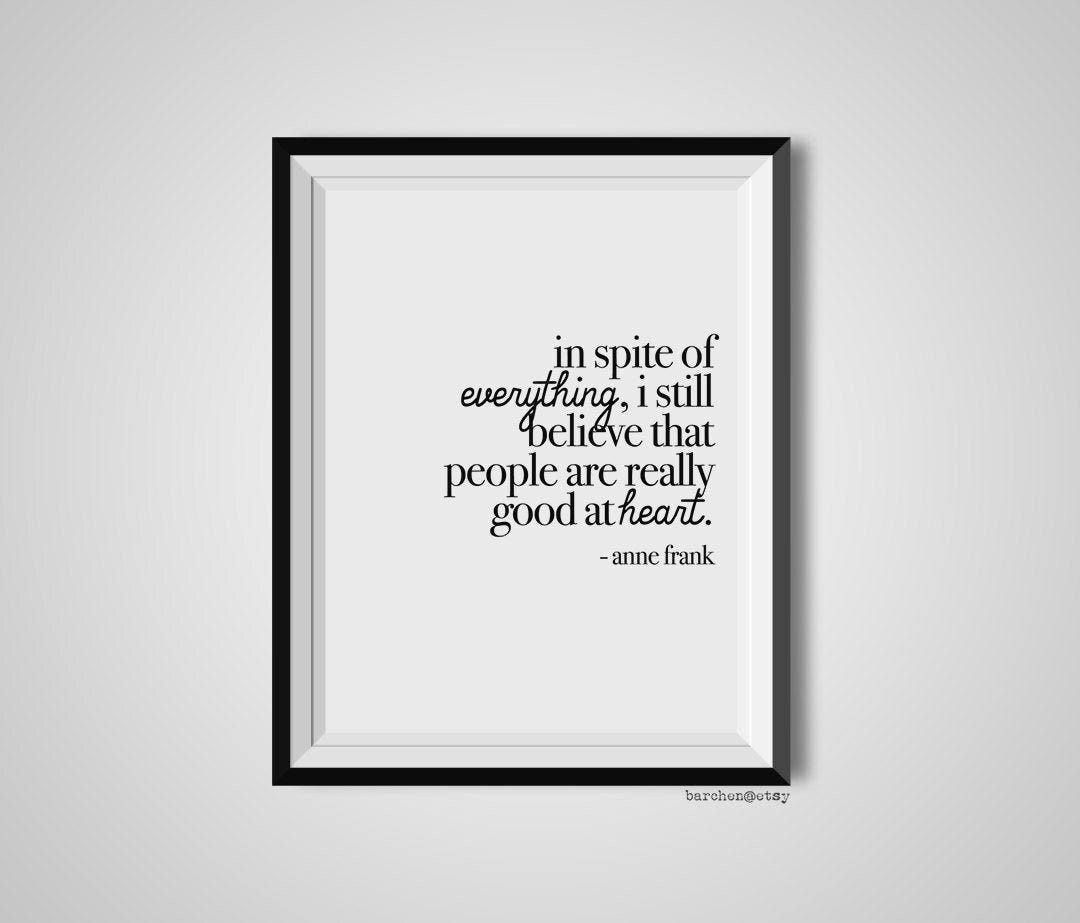 In Spite Of Everything Anne Frank Quote Print Quotation Etsy