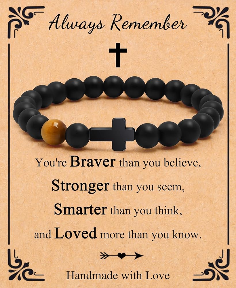 Amazon.com: Cross Bracelet for Men Bf Gift from Gf Natural Stone